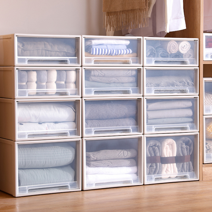 抽屜式收納箱可以靈活適應(yīng)于所有的衣柜,對(duì)于這種步入式衣柜,抽屜式收納盒正好也彌補(bǔ)衣服不好疊放的空缺。