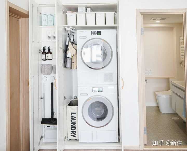 打開柜門才會(huì)發(fā)現(xiàn),連洗衣機(jī)、烘干機(jī)全都能藏進(jìn)去。