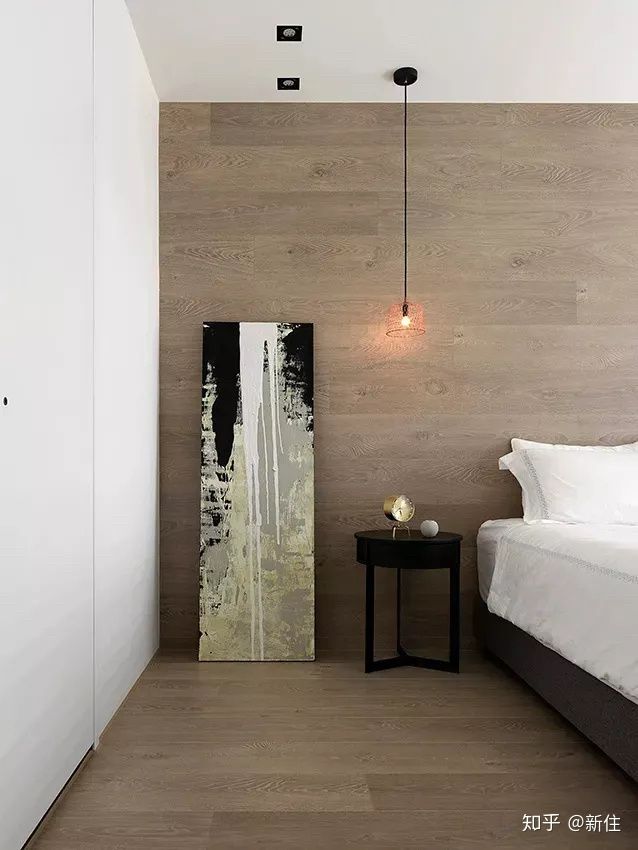 床頭吊燈也是極簡裝修的方式,通過吊掛在空中的方式,讓人一目了然。告別傳統(tǒng)的臺(tái)燈,減少占據(jù)床頭柜位置。