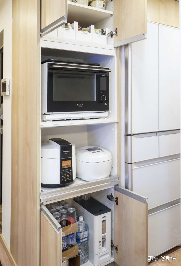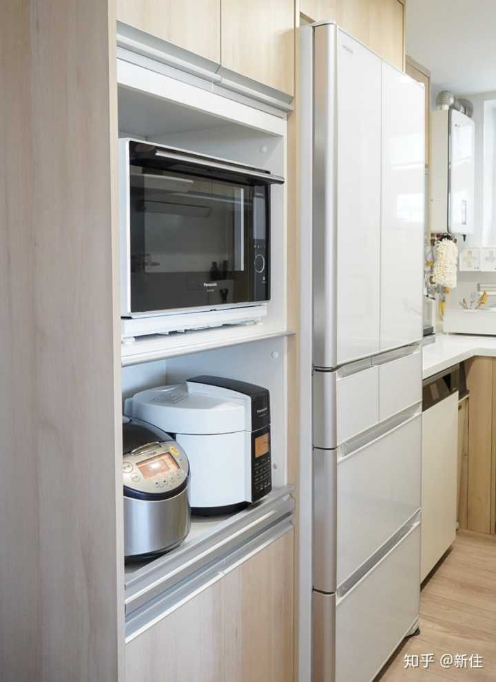 如果廚房空間足夠,定制高柜是不錯(cuò)的方式,可以把常用小家電都收納起來不說,還非常方便使用。